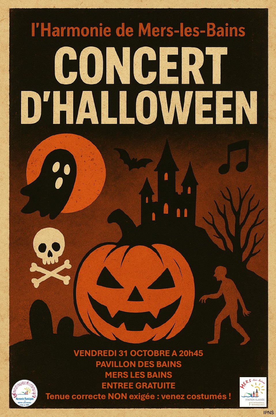 1 h 30 de concert sur le thème d’Halloween avec notre excellente Harmonie municipale !!
